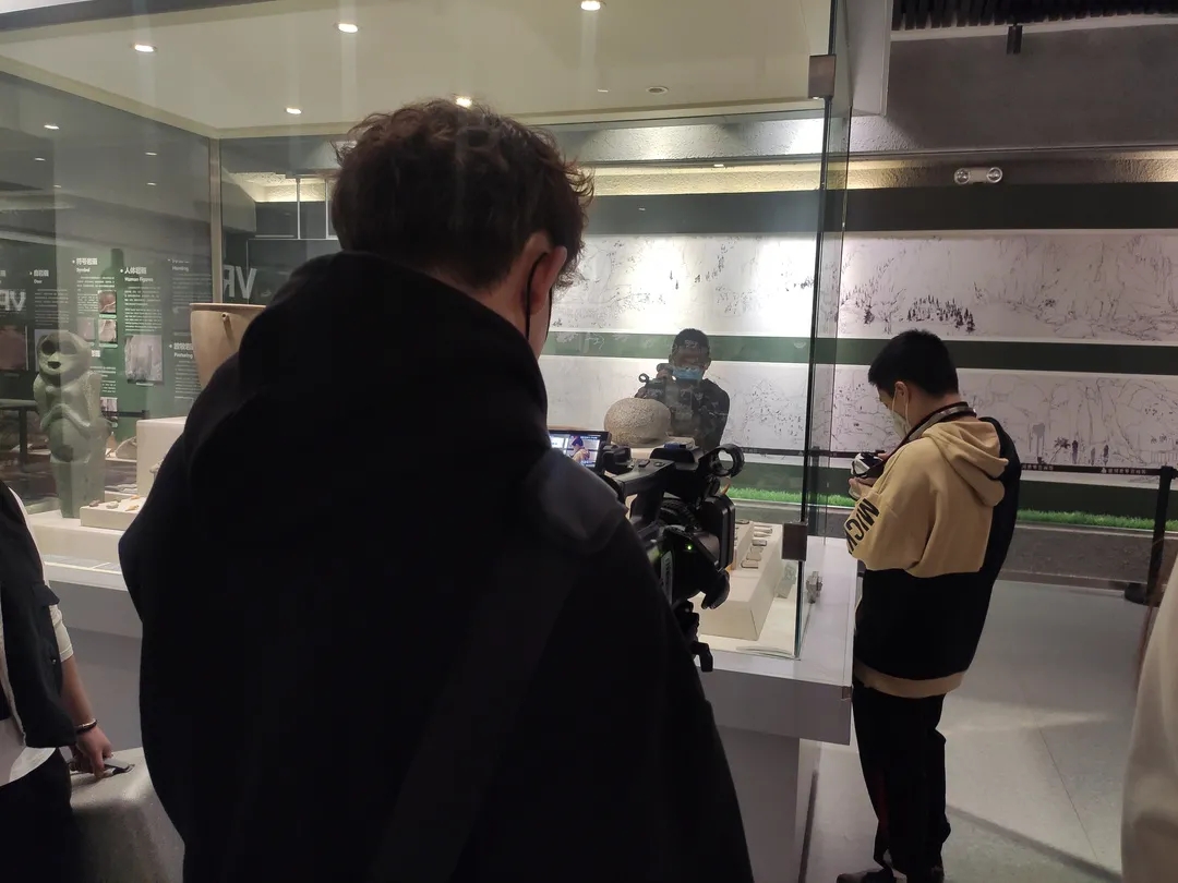 首站,小分队来到了贺兰山岩画国家级旅游景区。岁月失语,惟石能言。团队在景区工作人员的带领与讲解中走进了岩画博物馆。峭壁间的贺兰山精灵——岩羊,更是在团队的镜头下留下了灵动的一笔。在这里,指导老师手把手教同学们如何运用摄影机进行取景拍摄,传授对无人机操作与拍摄的经验。无人机的加入,使得整体拍摄素材更加多元化。