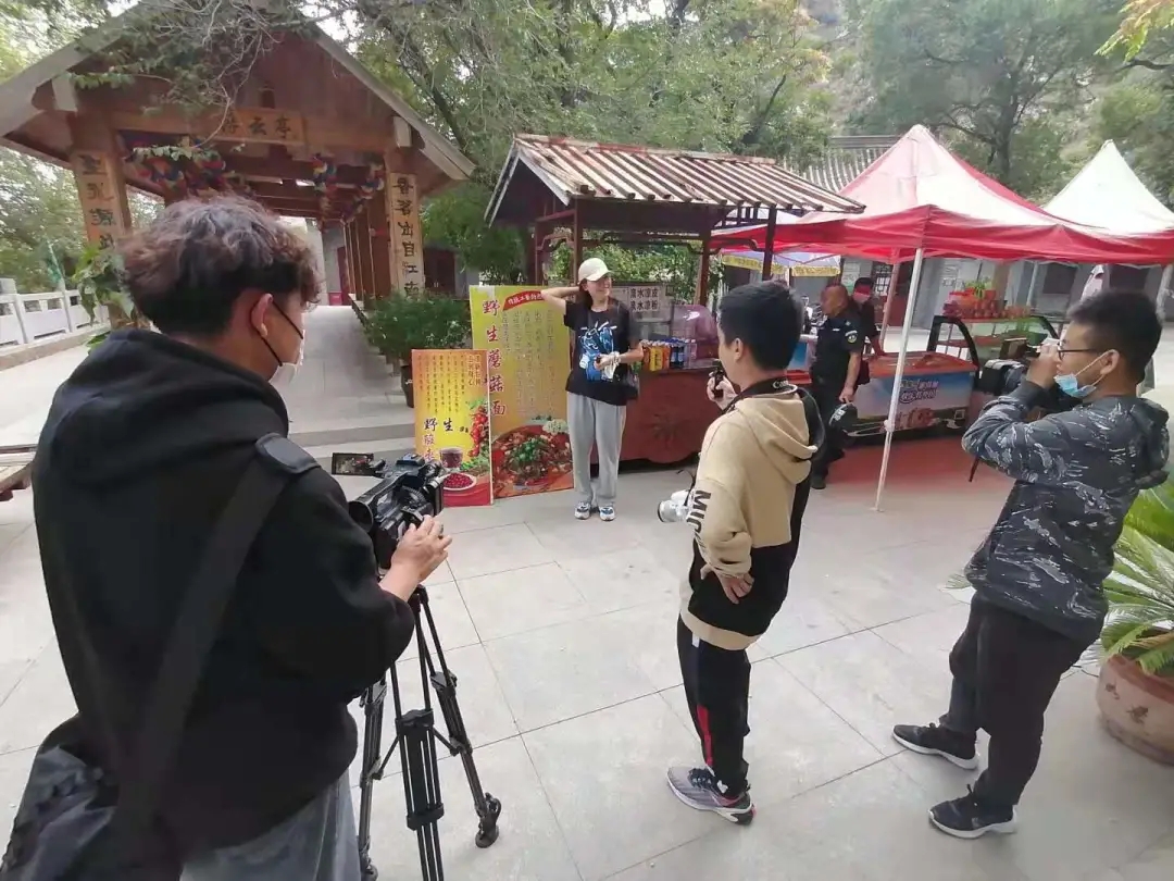 下午时分,小队来到了滚钟口风景区,在这里,四名同学灵活配合,运用手中的灵眸拍摄沿途风光,在老师的指导下,对滚钟口的标志性风景进行取景拍摄,对景区特色的贺兰山野生蘑菇面和野枣汁进行了“安利”。团队成员在宁夏第一槐下深深感受到了贺兰山风景区的旅游文化价值,也坚定了将这张宁夏名片做好的决心。