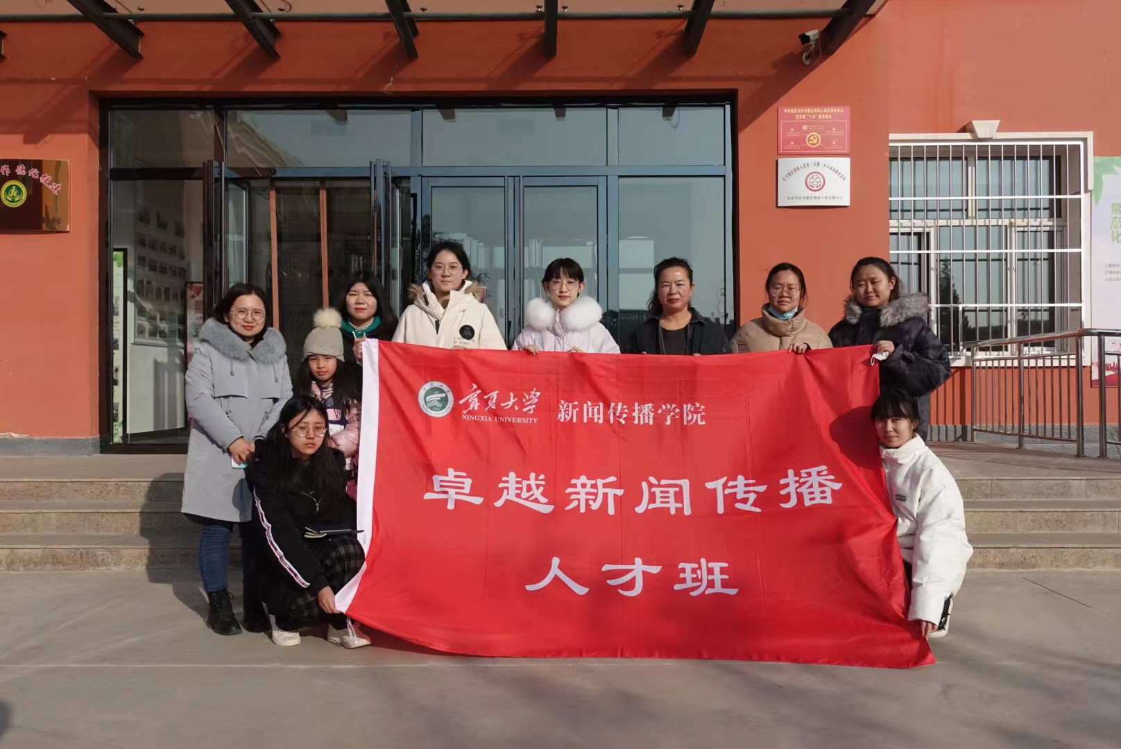泾源县的天气比彭阳县的天气更加寒冷,但是我们的采访热情没有一丝一毫地消退,大家在大山里、雪地里留下了自己的脚印,相信泾源的大山和积雪也在同学们心里留下了痕迹和感动。