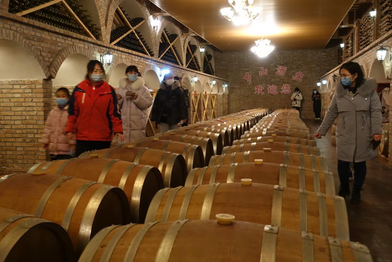 下午三点,我们到达罗山酒庄,一进酒窖,我们就闻到了扑面而来的酒香。在讲解员的带领下,我们一同参观了地下酒窖。犹如神秘西方古堡的地下酒窖,造型独特、古朴典雅、奇妙精巧,它的每一个角落,似乎都散发着书卷气味、笔墨芳香和迷人的文化魅力。在酒庄内,我们采访了乔文生和乔英波父子,自2001年搬迁到红寺堡镇中圈塘村以来,老乔种葡萄,小乔学酿酒,追寻着他们的“紫色梦想”。葡萄改变了他们的生活,提高了他们的生活质量,虽然目前葡萄酒产业遭遇寒冬,但他们均坚信,寒冬过去一定会遇到曙光。