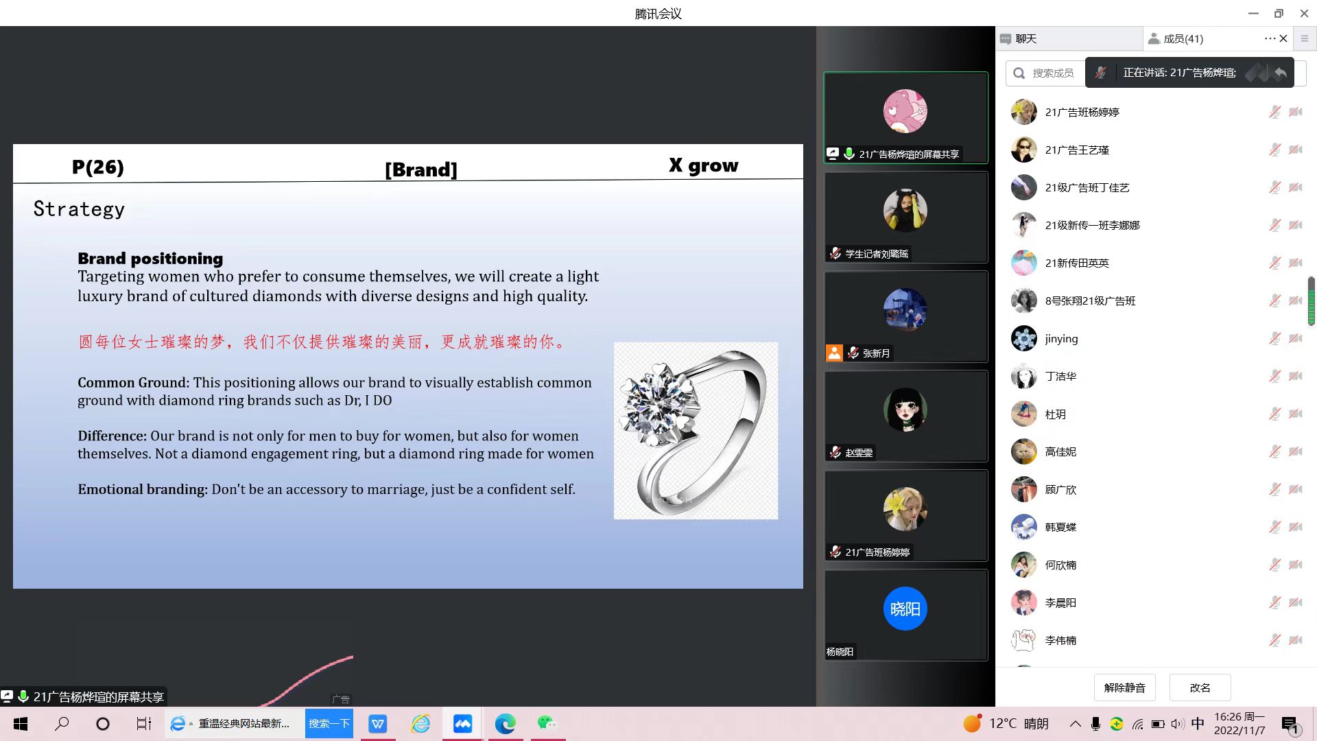 课程教学检查环节,全系老师聆听了赵雅洁博士主讲的2021级广告班《品牌学》线上课。听课结束后,召开教学评议会,会议由广告系主任朱俊松主持。