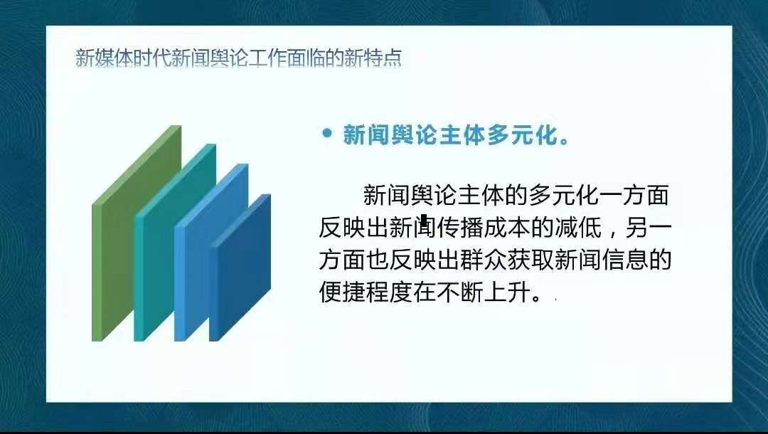 讲座中,李世举从新媒体时代新闻舆论工作的新形势、新要求和新方法三个方面开展讲述和交流,他首先分析了新媒体时代新闻舆论工作中的特点,指出随着移动传播技术的不断发展,舆论环境越来越复杂。他强调,正是在这样的新形势下,新闻工作者更要全面把握党对新闻舆论工作的新要求,坚持党性与人民性的统一,坚持正确舆论导向,坚持正面宣传为主,敢于向虚假新闻和错误思想亮剑,明辨是非,尊重事实。随后,他向大家阐述了新时代新闻舆论工作的新方法。在媒体层面,他强调,新媒体时代是一个用户为王的时代,树立媒体品牌意识、明确用户导向成为构建新型传播关系中重要的一环,要探索生产多元化产品,“从切口去做硬新闻”;在记者层面,他结合切身心得体会,提倡记者应选择反映时代焦点的重大题材,努力践行“四力”;创新传播手段,讲好中国故事。