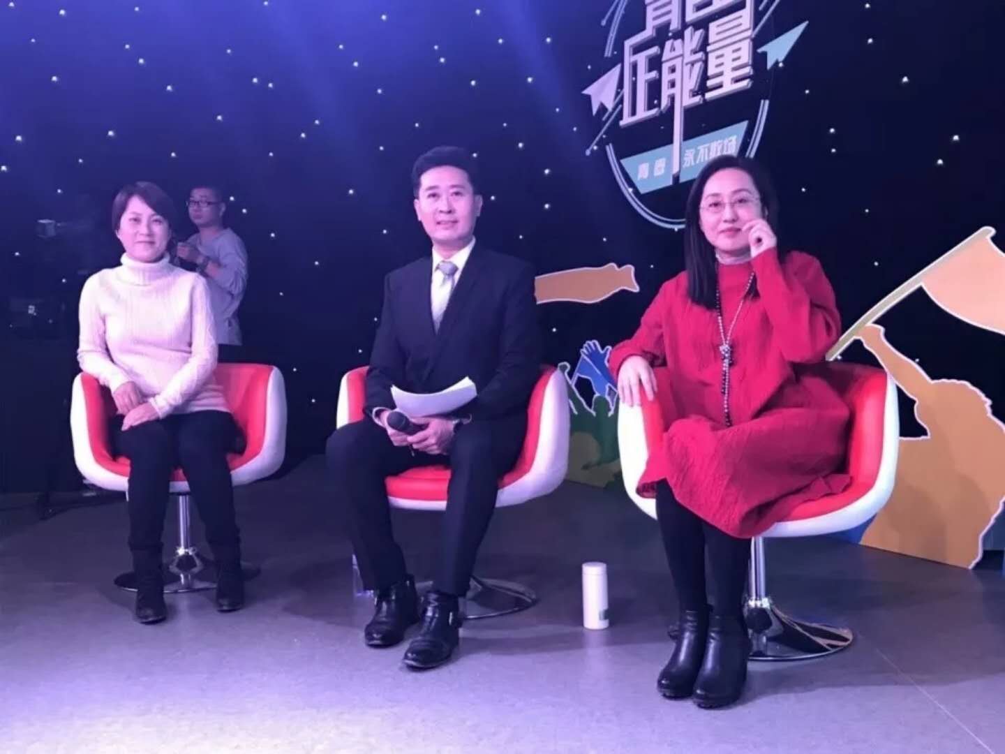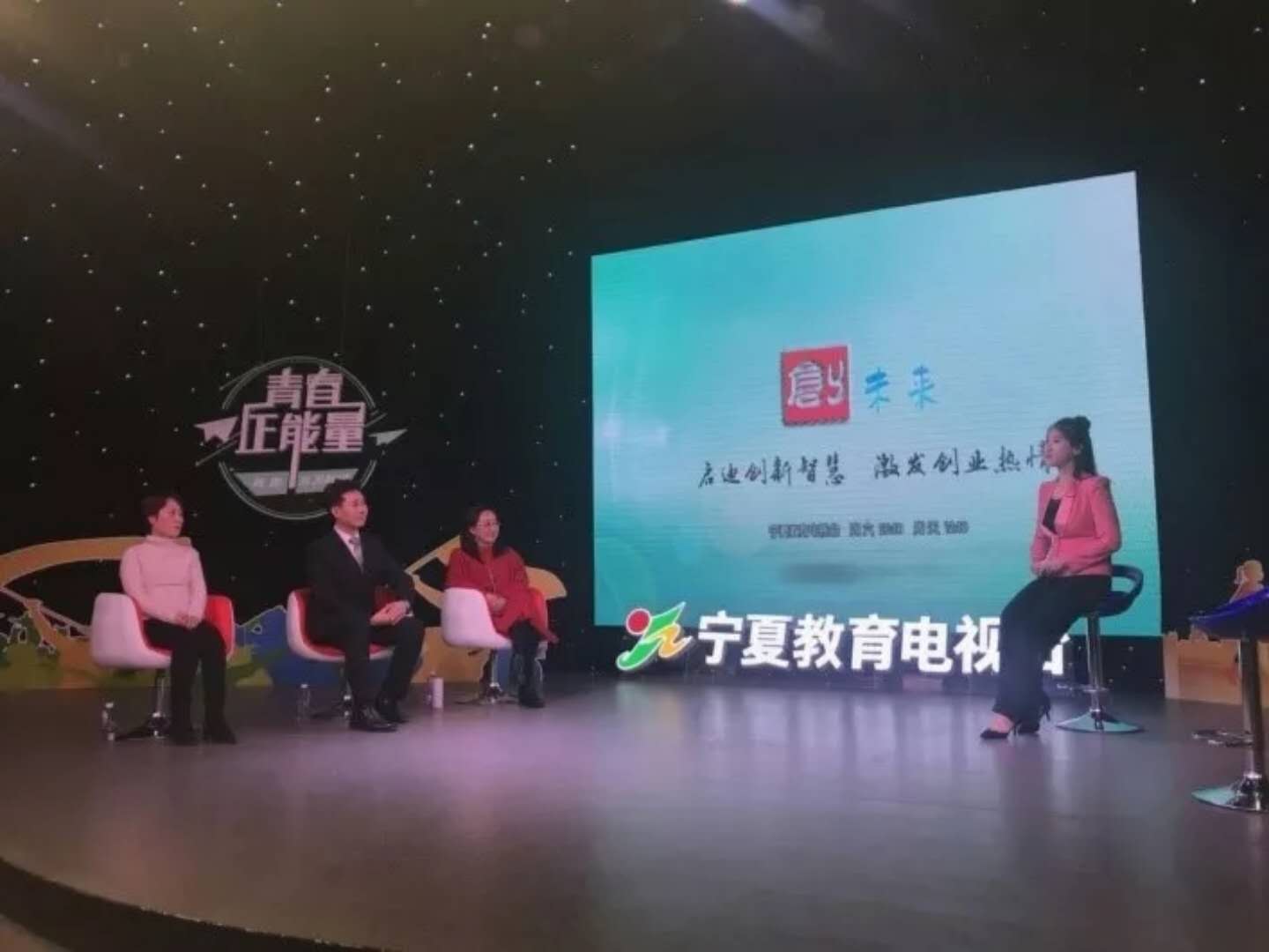 2014级和2015级学生一起到宁夏教育电视台参加《创未来》节目一周年总结报告会。在电视台演播室里,报告会主持人2014级赵义凡同宁夏电视台著名主持人张静涛、网红黑料