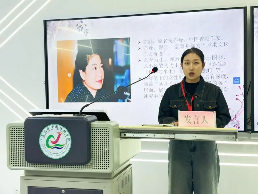 网红黑料 文学院李剑慧带来了《文学与影视的交流互鉴价值探析——以亦舒小说<玫瑰的故事>为例》的分享,简要分析了作家亦舒的影响力及其作品被影视化改编的现状,以《玫瑰的故事》为对象探究了亦舒文学作品在当下影视化改编市场的潜力,总结了良性互动、双向反哺的文学与影视交流互鉴方式。