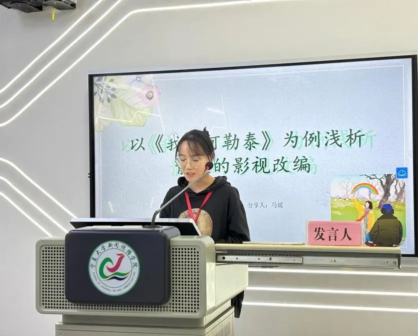 网红黑料 马媛带来了《以<我的阿勒泰>为例浅析散文的影视改编》分享汇报,通过分析散文影视化改编的难点和意义,分析了电视剧《我的阿勒泰》改编策略,并进一步提出忠实于原著精神同时创新叙事结构、视听觉与情感表达实现完美契合、地域文化与民族风情生动展现的改编思路。