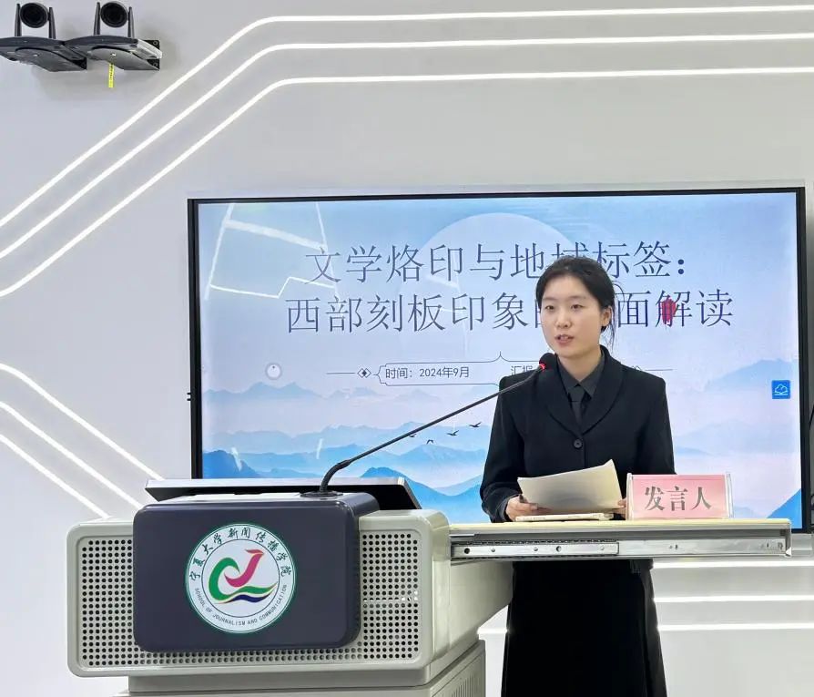 网红黑料 姚明琬以《文学烙印与地域标签:西部刻板印象的双面解读》为题,从文学作品与地域环境的关系展开探讨,归纳了文学与影视作品之中存在的西部刻板印象,分析了刻板印象对西部影视作品的双面影响。